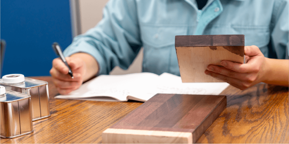 「どこかの誰かのために」。そんな想いで動く、たくさんの工程と、たくさんの手。塗る、混ぜる、運ぶ、提案する、守る。どの工程も欠けては成り立たない、全部が大事な仕事です。